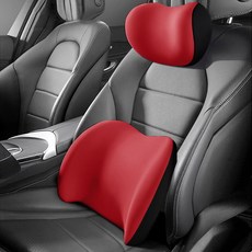 뷔이위이 차량용 목쿠션+허리쿠션 자동처 메모리폼 베개 세트, 1세트, 레드
