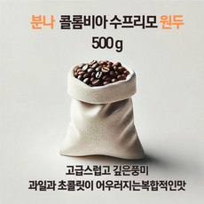 분나 콜롬비아 수프리모 워시드 원두커피 500g (분쇄안함), 1개, 홀빈(분쇄안함)