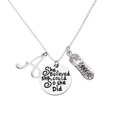 개인 맞춤 러너 목걸이 커스텀 러닝 그녀는 할 수 있다고 믿었고 편지 매력 스니커즈 펜던트 트랙 필드 마라톤 선물