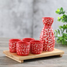 도쿠리 사케병 사케잔 5P구성 잔4P+도쿠리1P, 유광C타입_레드, 1세트