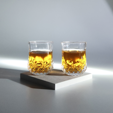 아이템픽 고량주잔 코스터 세트 전통 소주잔 60ml 2개, 패턴 다이아 미니 글라스 잔 60ml 2개 + 코스터, 1세트