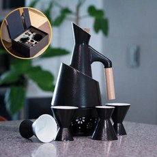 Lim401 고급 사케잔 도쿠리 블랙매니아 데워먹는 귀한분께 드리는 정종 소주잔 명절 선물세트, B블랙매니아세트(잔4+술병1+워머1), 1개
