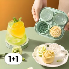 1+1 로즈 얼음 트레이 실리콘 왕얼음 얼음틀 아이스 왕볼 대형 아이스볼 하이볼 메이커 원형 동글이 위스키 몰드, 그린