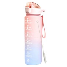 포코이 원데이워터 스포츠 빨대 물병+빨대솔, 핑크 + 블루, 1L, 1세트