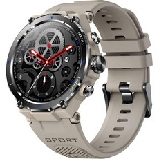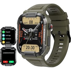 남성 스마트 워치 블루투스 콜 러기드 스마트 워치 칼로리/단계 카운터 안드로이드 iOS 휴대폰과 호환되는 아웃도어 스포츠 피트니스 워치, khaki grey