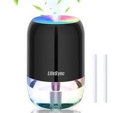 LifeSync 가습기 초음파 무드등 공기 습도 조절 무선 투명 가정용 USB충전 미니 탁상용 대용량 200ml, 블랙