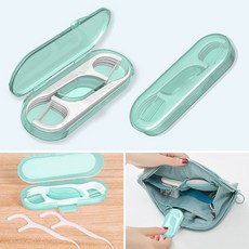 해외 여행 필수품 간편한 휴대용 치간치실 자동 치실 수납함 케이스 1p + 치실 100p 세트, 그린, 2개, 10개입