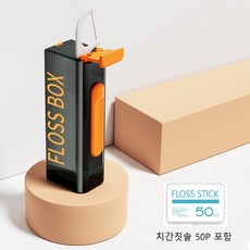 해외 여행 필수품 간편한 휴대용 치간치실 자동 치실 수납함 케이스 1p + 치실 100p 세트, 오랜지, 1개, 10개입