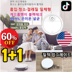 [초특가] 스마트 로봇 청소기 99.9% 은이온 살균 가정용 물걸레 자동 청소기 흡입/청소/걸레질 일체형, (1+1세트)흰색, 물걸레 청소기