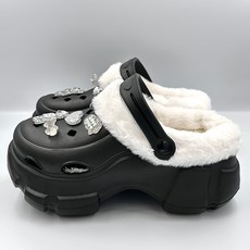 재리니 EVA 여성 블링 샤인 파워 7cm 키높이 통굽 플랫폼 겨울 방한 털슬리퍼 네일샵 미용실 RW-S084